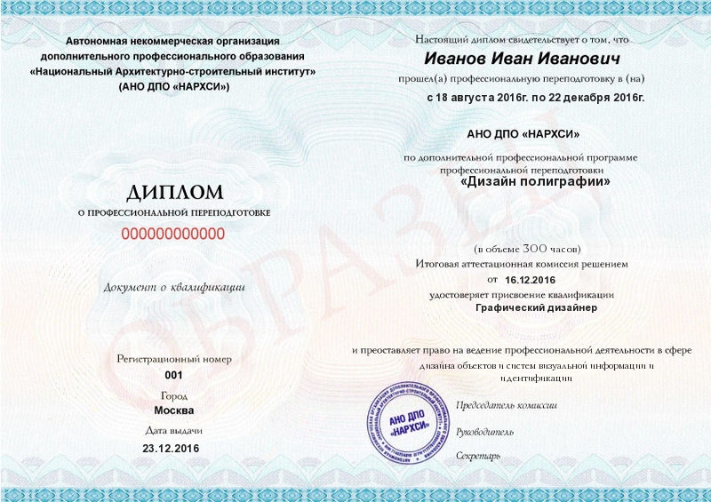 Каждый документ (диплом/удостоверение/свидетельство) соответствует п.2 ст.60 N-273 ФЗ, оформляется на русском языке, печатается на типографском бланке, защищённом от подделок. Ставится официальная печать образовательной организации. С образцами документов можно ознакомиться на сайте в разделе «Лицензия и документы».